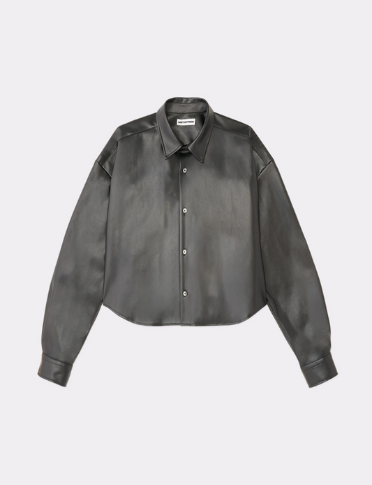 FAUX LEATHER DOUBLE FRONT PULLOVER SHIRT