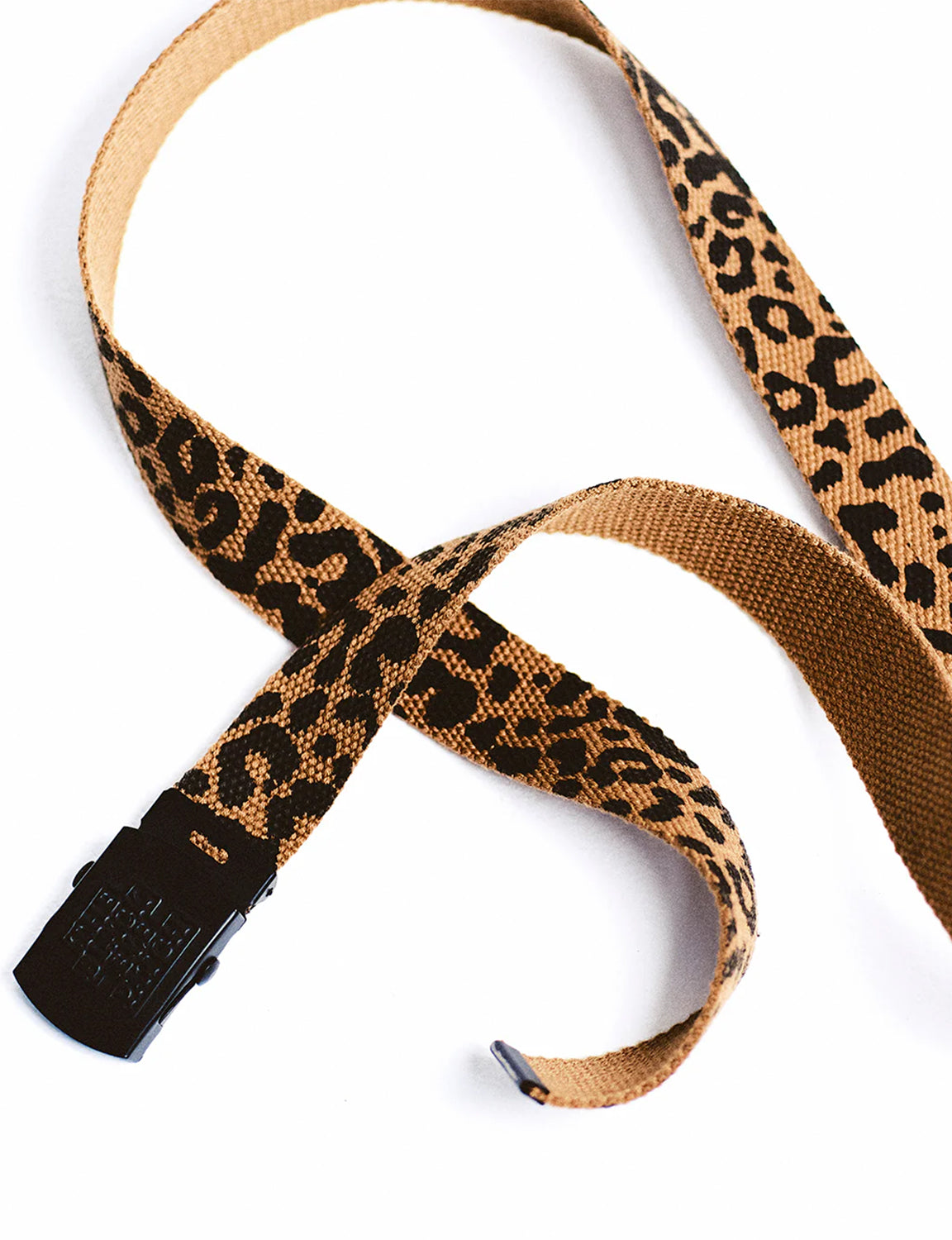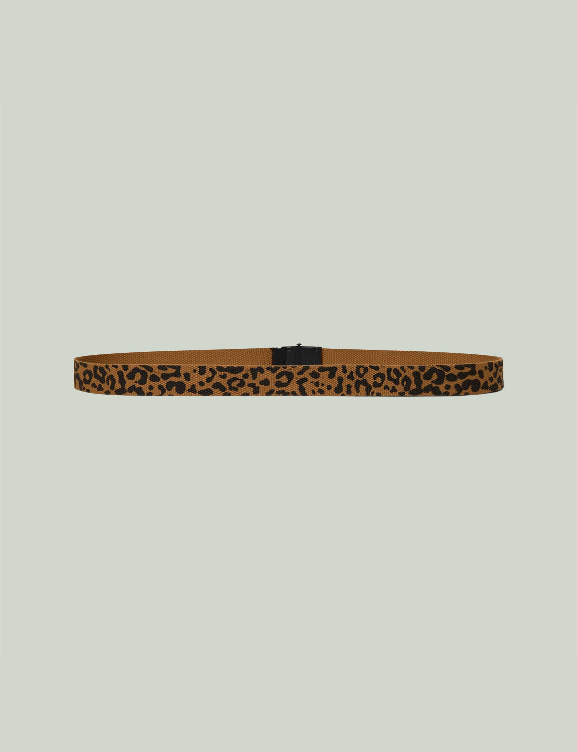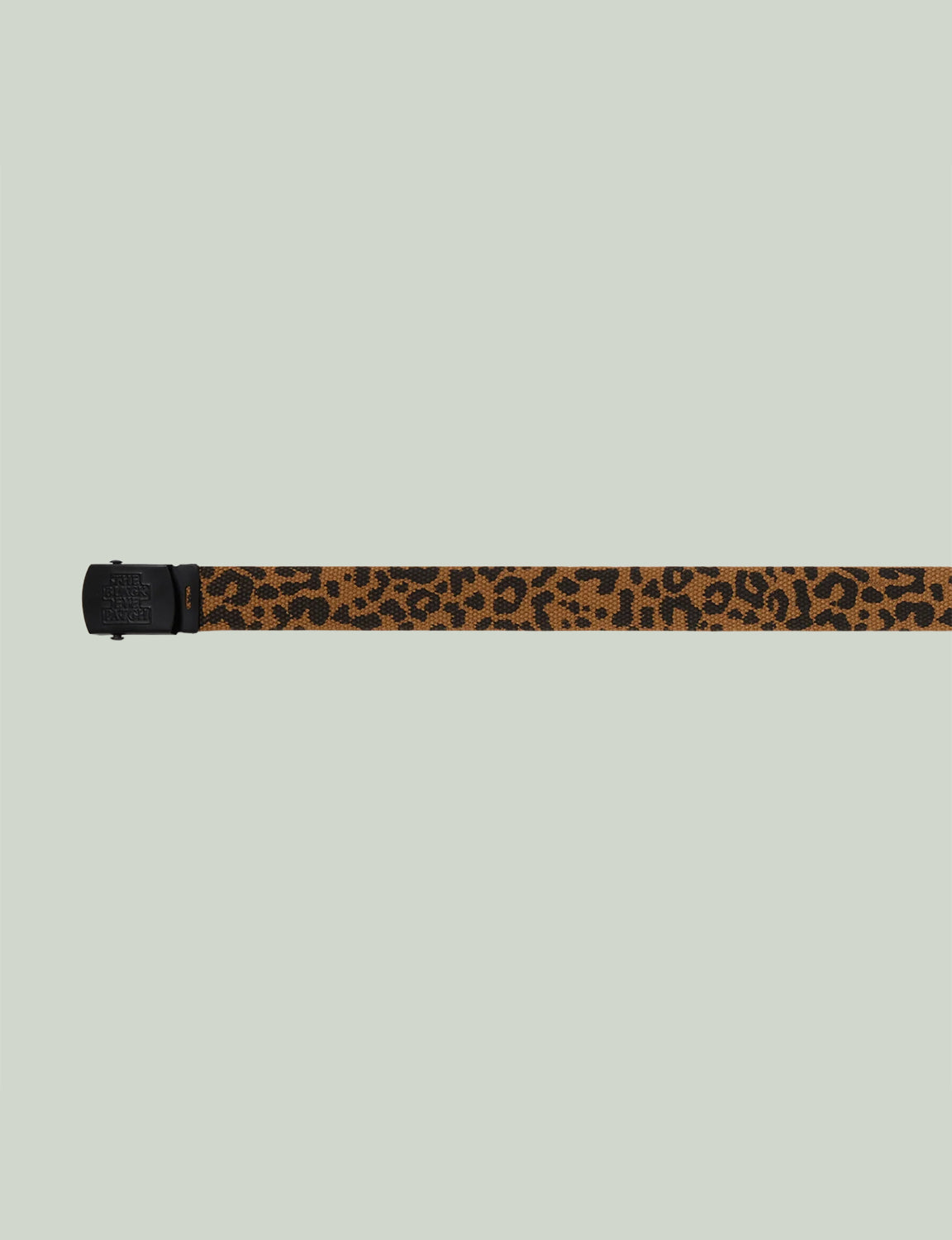 ブランドオリジナルのレオパード柄をプリントした総柄テープに "OG LABEL" ロゴを落とし込んだバックルを取り付けた G.I.ベルト。