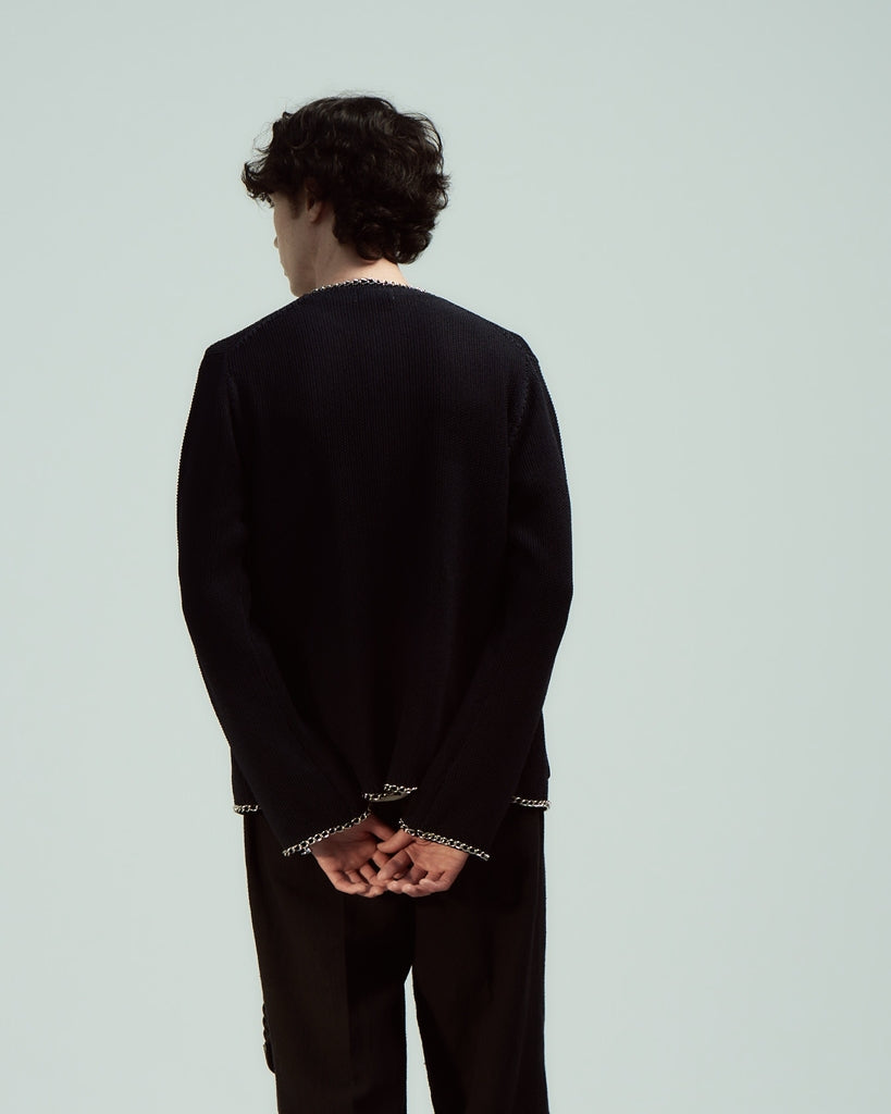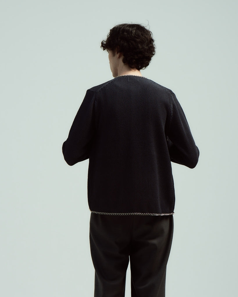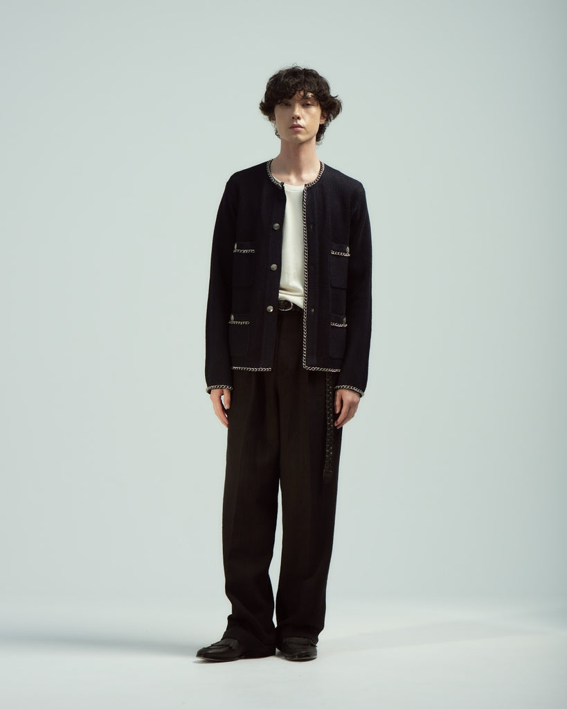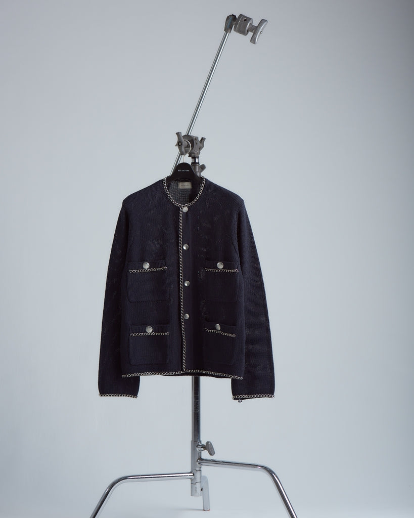 綿にポリエステルの加工糸を加えた細番手のリリヤーンを使用しております。