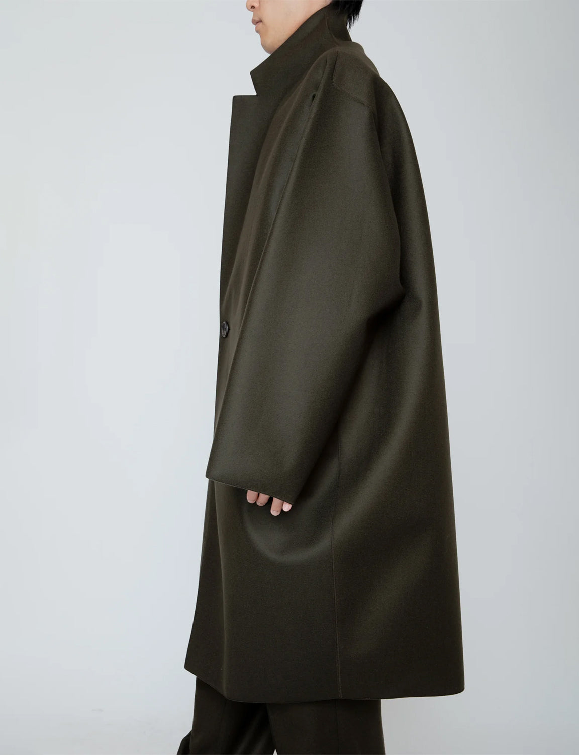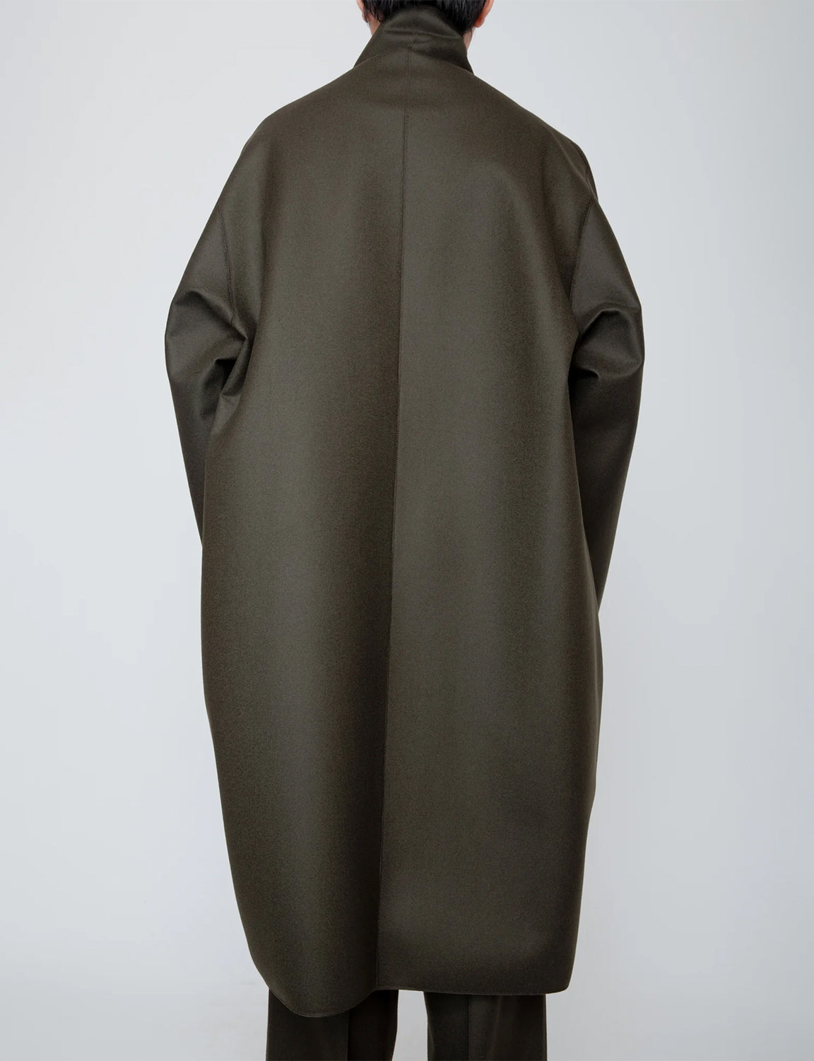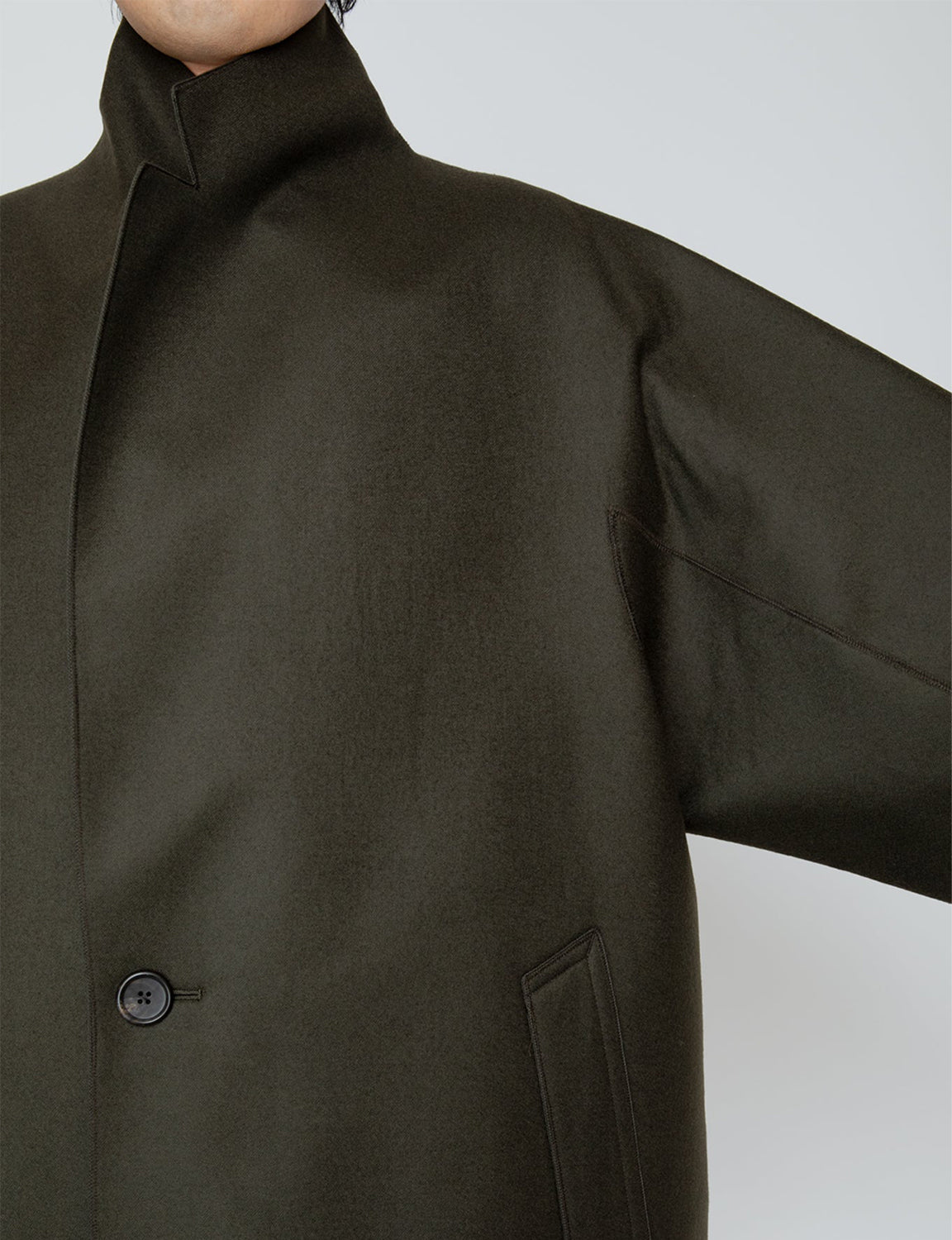 立体的なフォルムを美しく形作るコクーンシルエットのコート。
