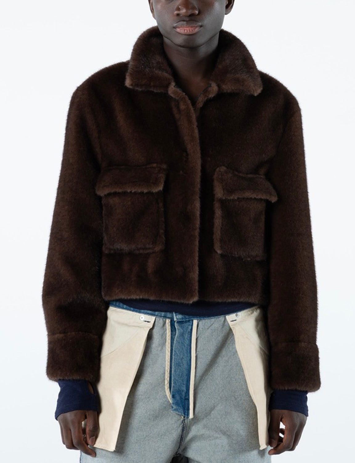 ファージャケットが欲しいけど、ボリューミー過ぎる... だったり、スタイル悪く見えるから...という人にオススメ。 スーツにも、ドレスにも合せられる。が、デニムとも相性がいい。 そんなデザインを考えました。 フェイクファーも出来るだけリアルに見えるもので、毛足の長さも 短めのもの。すっきりとしたイメージで着られます。 シックに。クラシックに。だけども新しく!