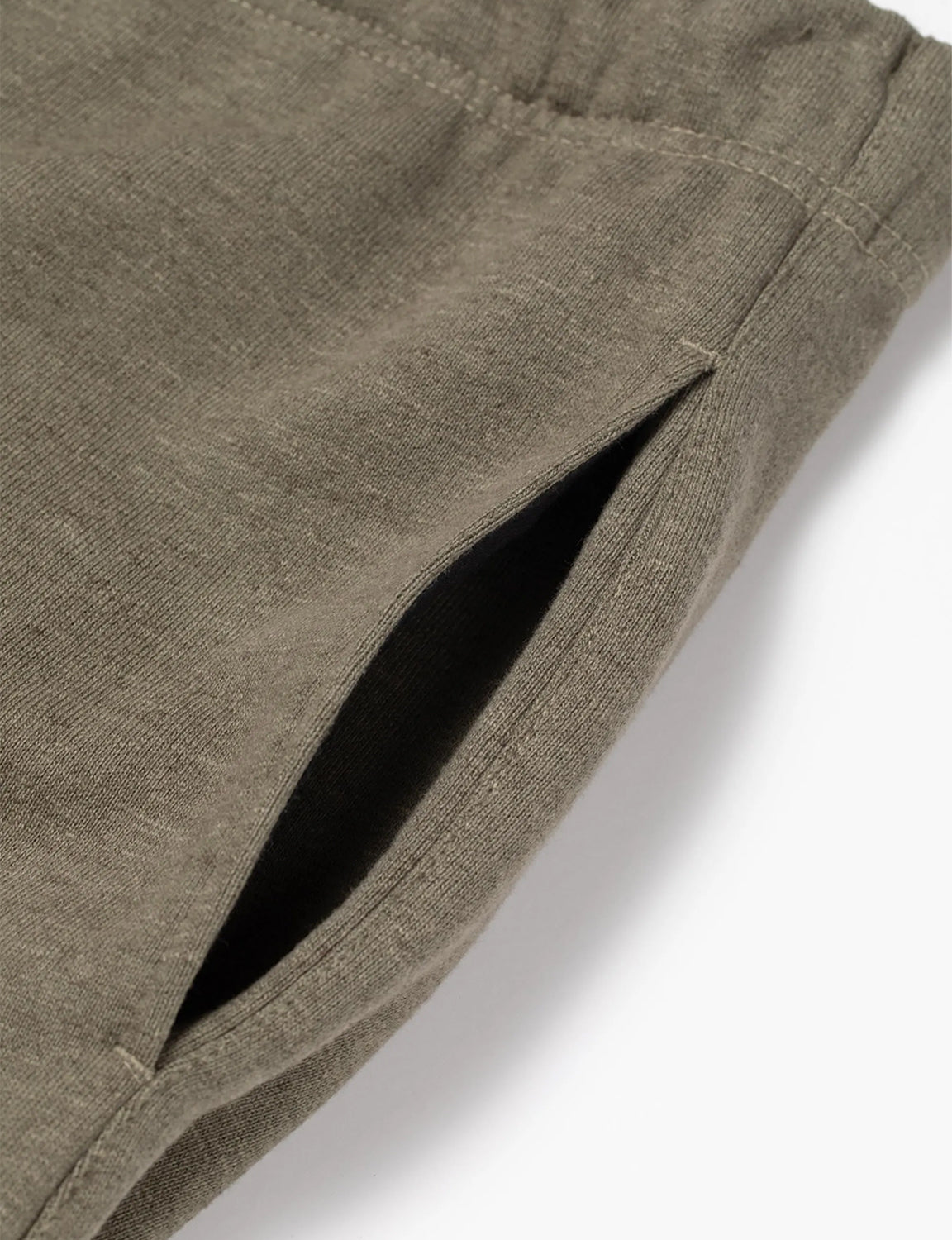 2タイプの綿を混ぜてるクラブ調に糸が出ているこの生地は 環境に配慮された薬剤を使用し、従来の染色方法より 水使用量、CO2排出量を30%以上削減して作る BRING OUT ECo+という環境への負担を抑えた生地なのです。 コットン100で柔らかく 着ていけばもっと滑らかに。 是非育ててほしいです。股部分と裾部分に切り返しを入れているので、 綺麗なラインに仕上がっています。