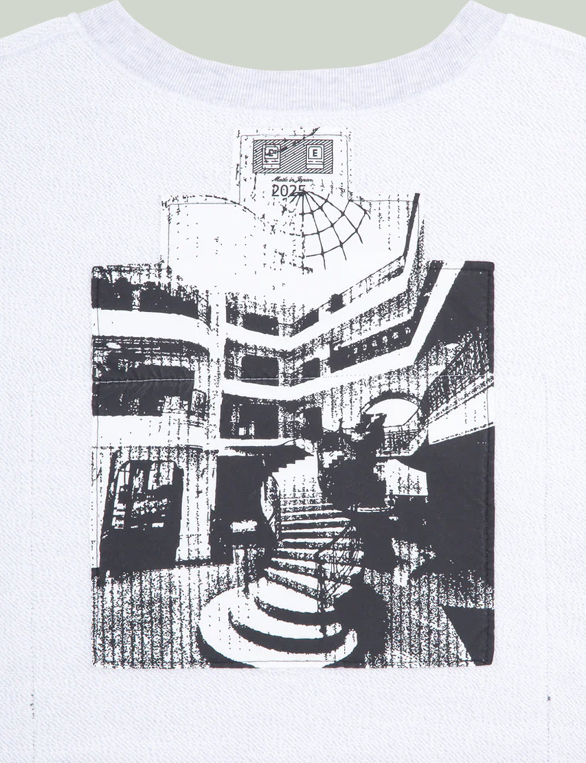 前身頃、後ろ身頃表、裏に布パッチ。袖にグラフィック。