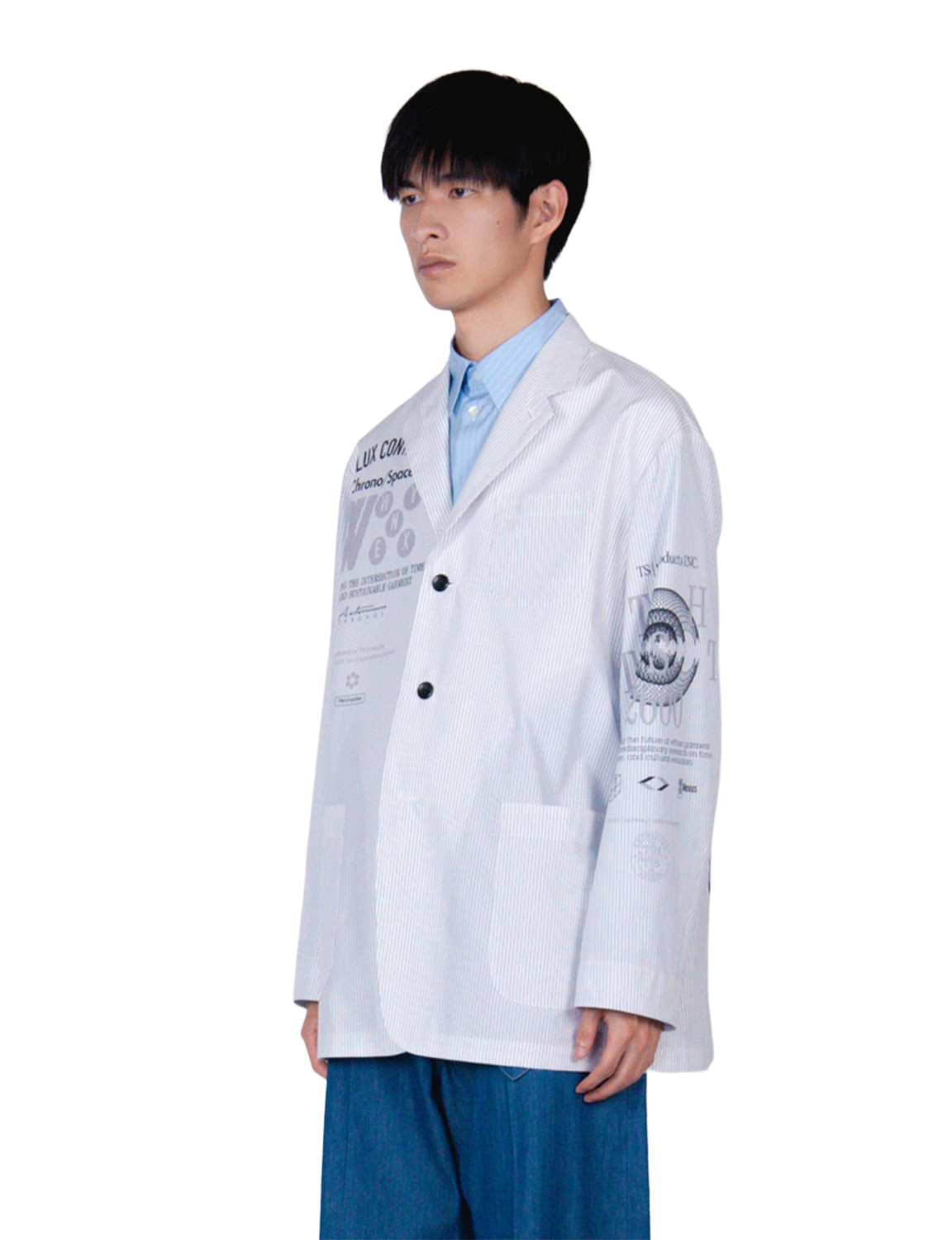 Graphic Print Oversized Jacket / white stripe