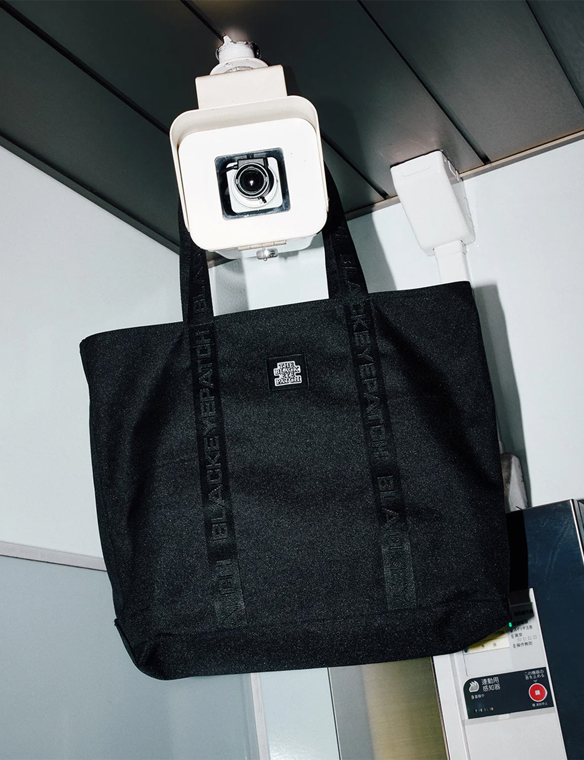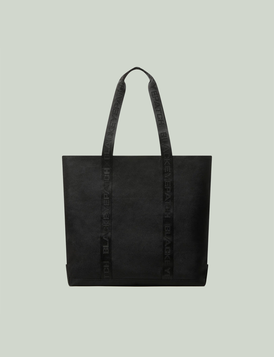 スクエア型の "OG LABEL" ワッペンを配置したトートバッグ。 持ち手にはブランドロゴを落とし込んだオリジナルのジャガードテープを使用。