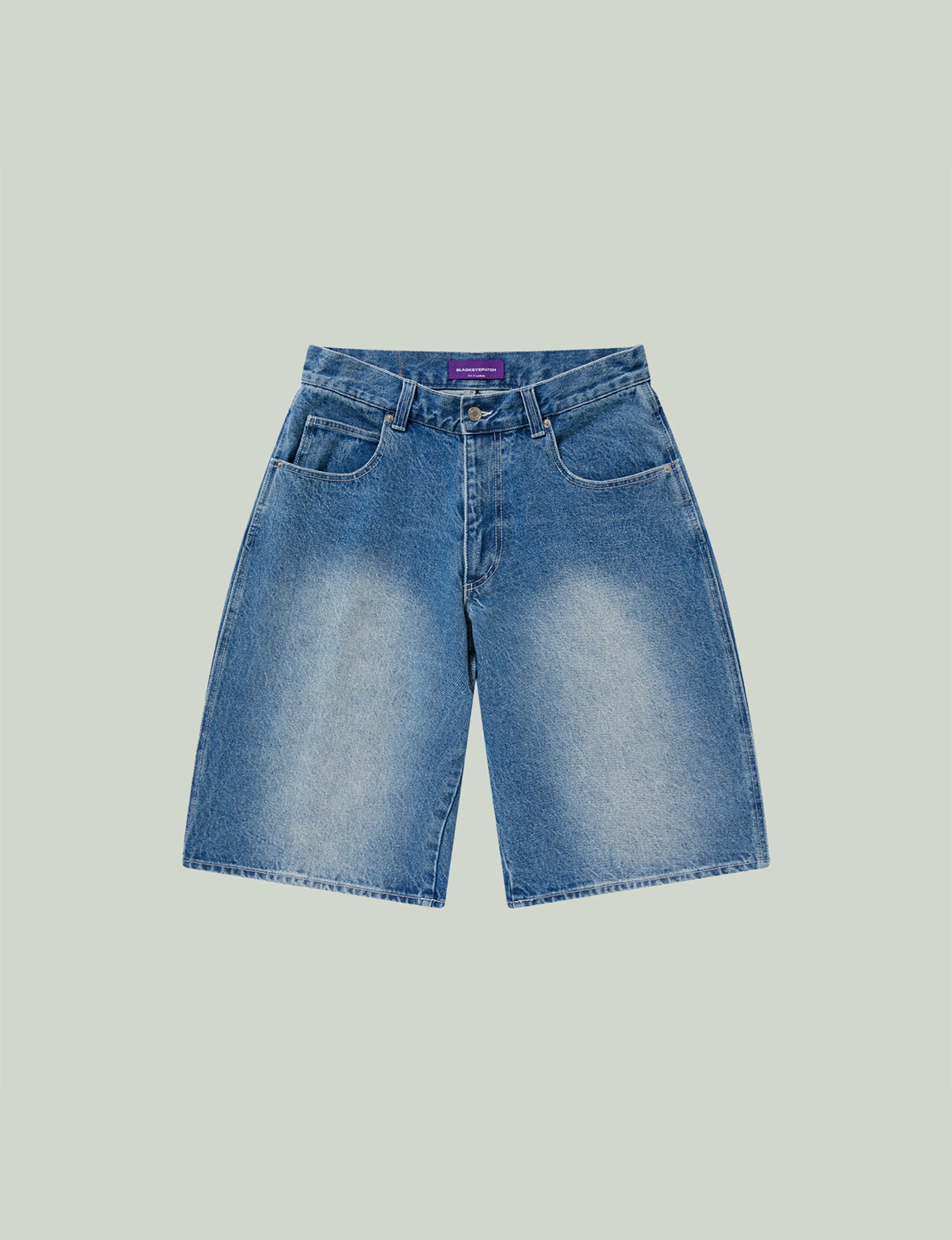 13.5oz のデニム生地を採用しウォッシュ加工を施したバギーショーツ。