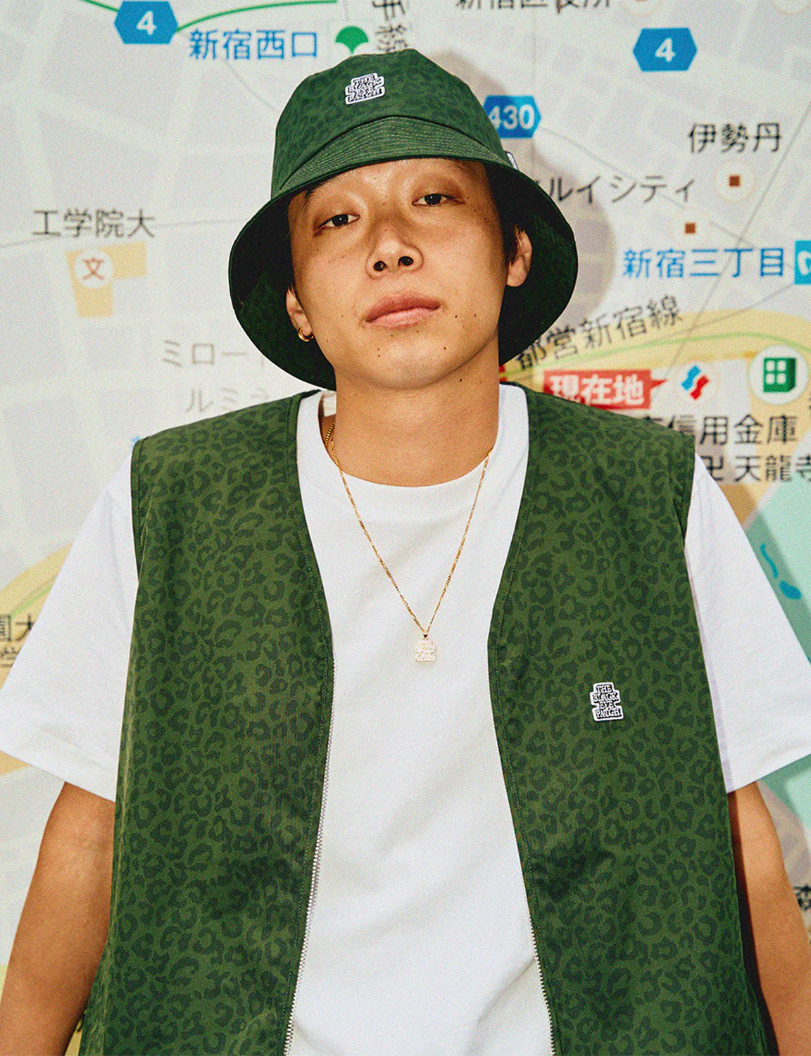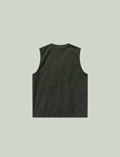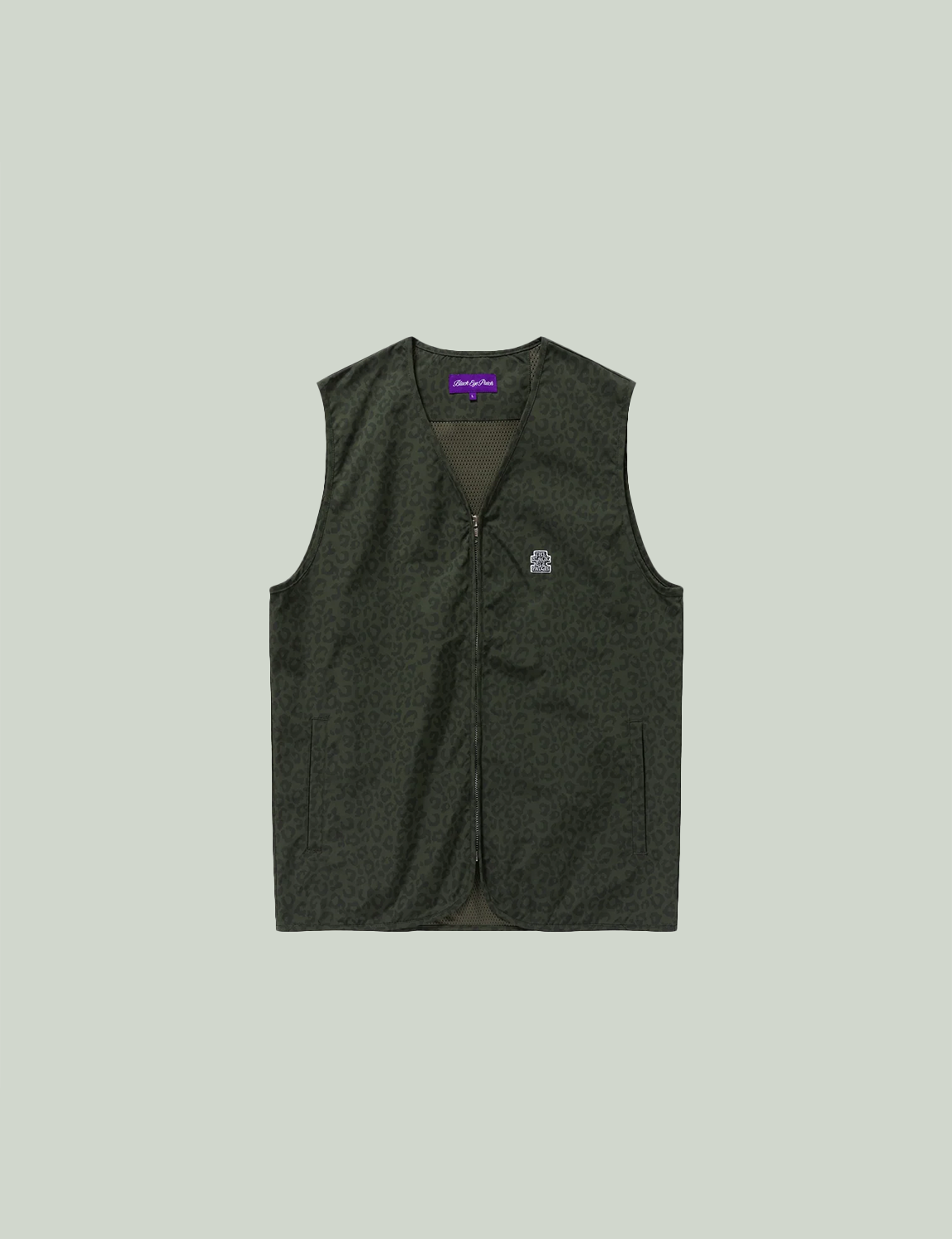 ボディカラーと同色系のレオパード柄がプリントの生地を使用し、胸元に "SMALL OG LABEL" ロゴワッペンを施したベスト。