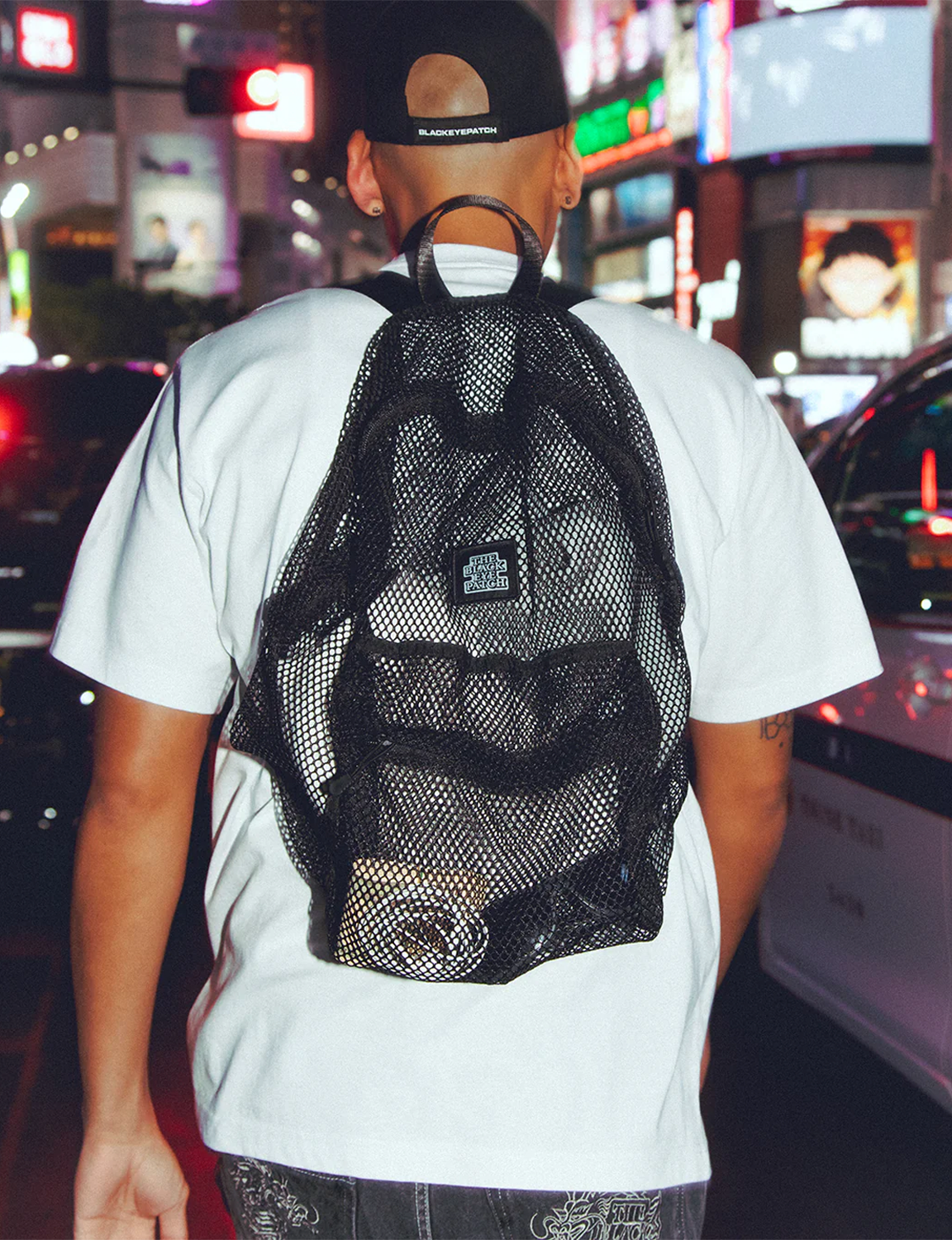 フロントにスクエア型の "OG LABEL" ワッペンを施したメッシュ素材で構築したバックパック。