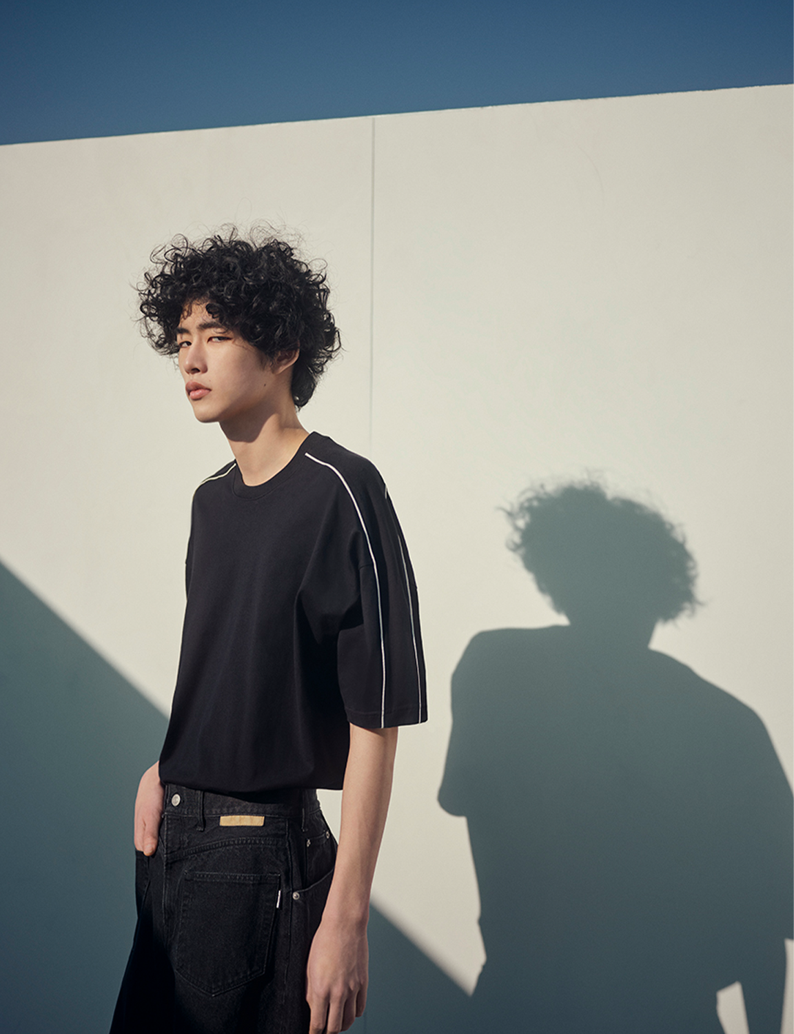 同型でフェアアイル柄の FAIR ISLE PRINT PIPING SLEEVE BIG TEE、同素材で長袖の PIPING SLEEVE L/S TEE の展開あり