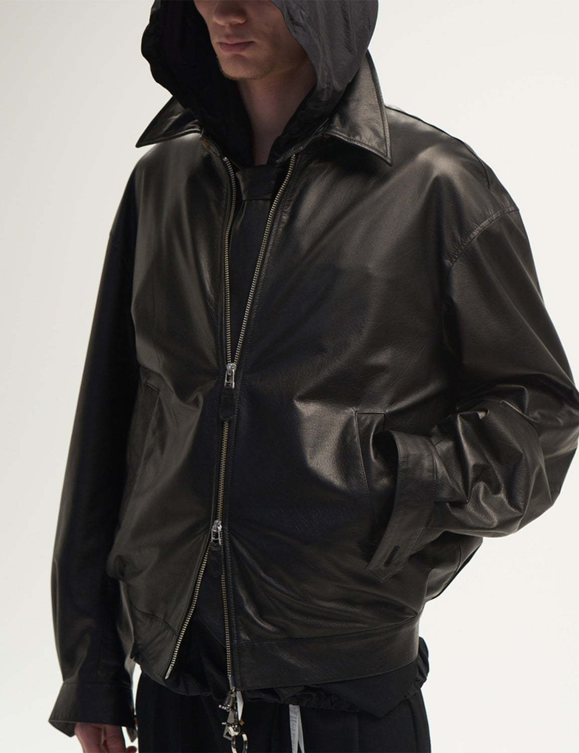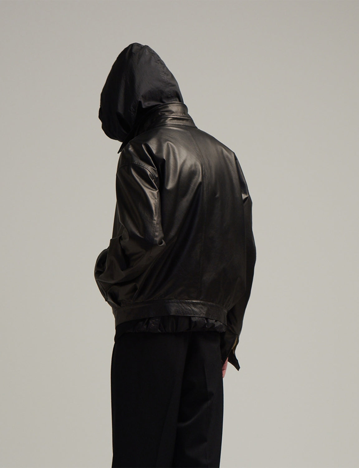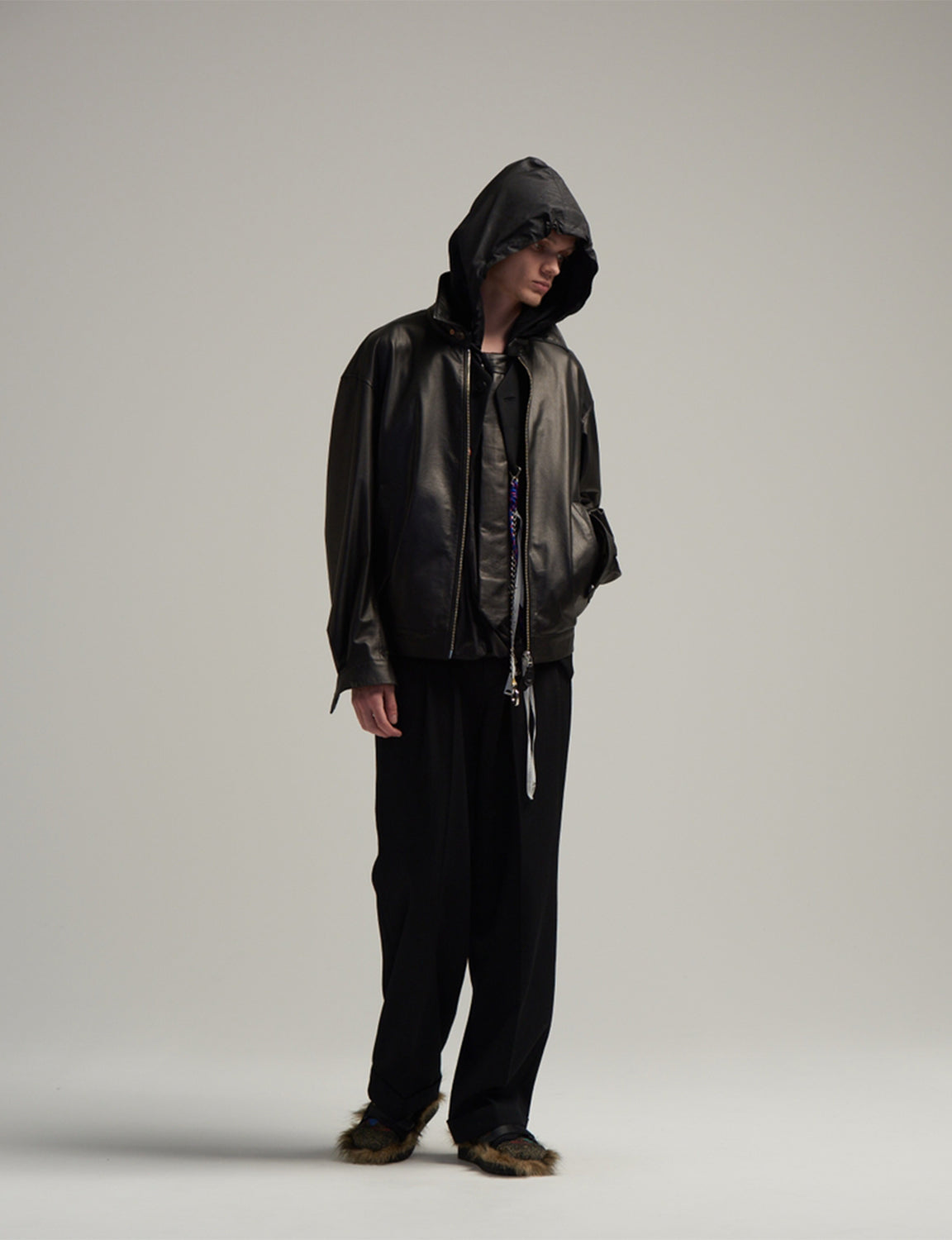 台襟の内側に、着脱可能なレザーネクタイが付いております。