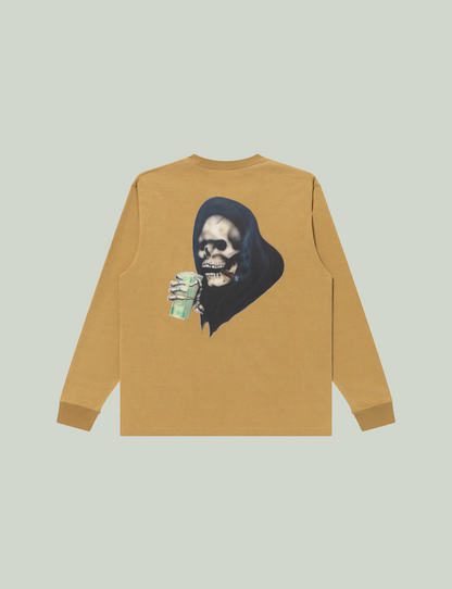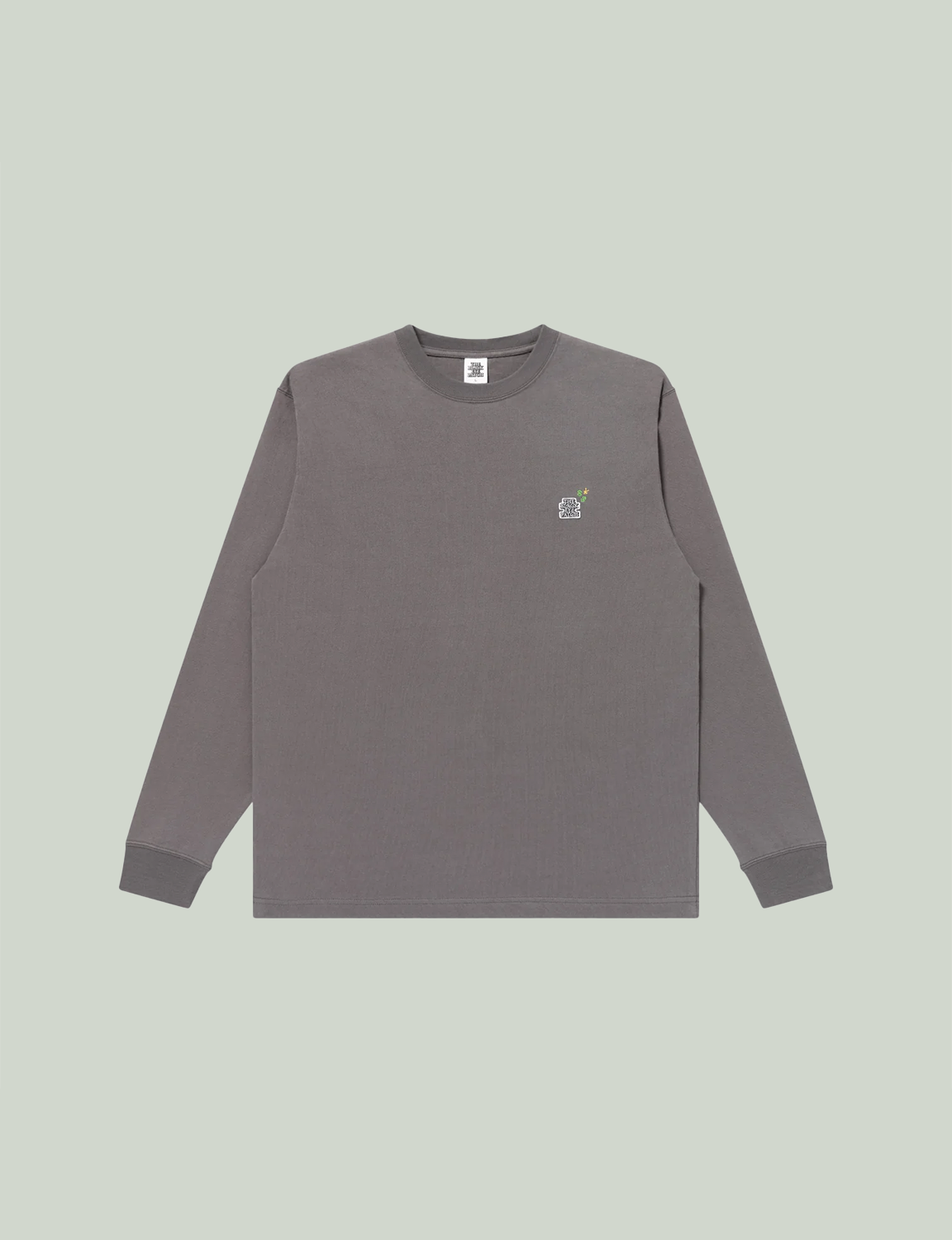 フロントの左胸に "SMALL OG LABEL" のロゴワッペンにドルと円のマーク刺繍をデコレートしたロングスリーブ T シャツ。