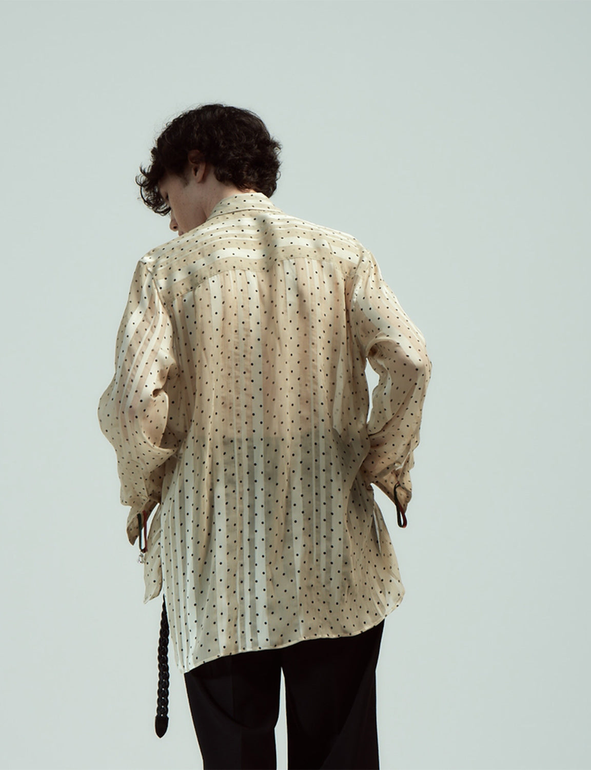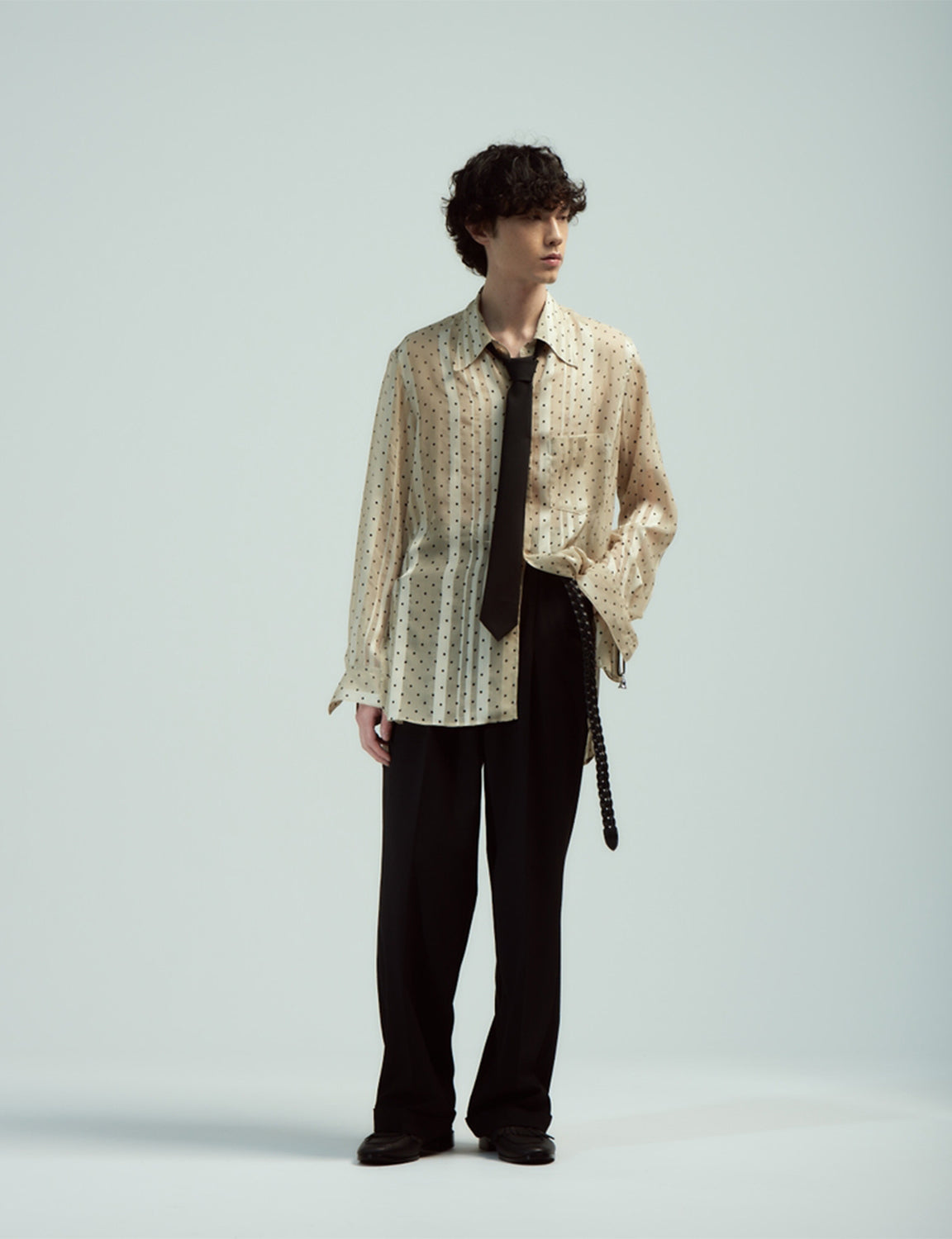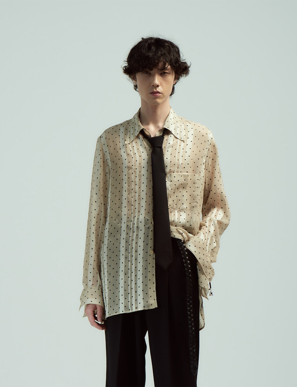 細番手の糸を使った透け感のある楊柳と、サテンのコントラストが特徴的です。