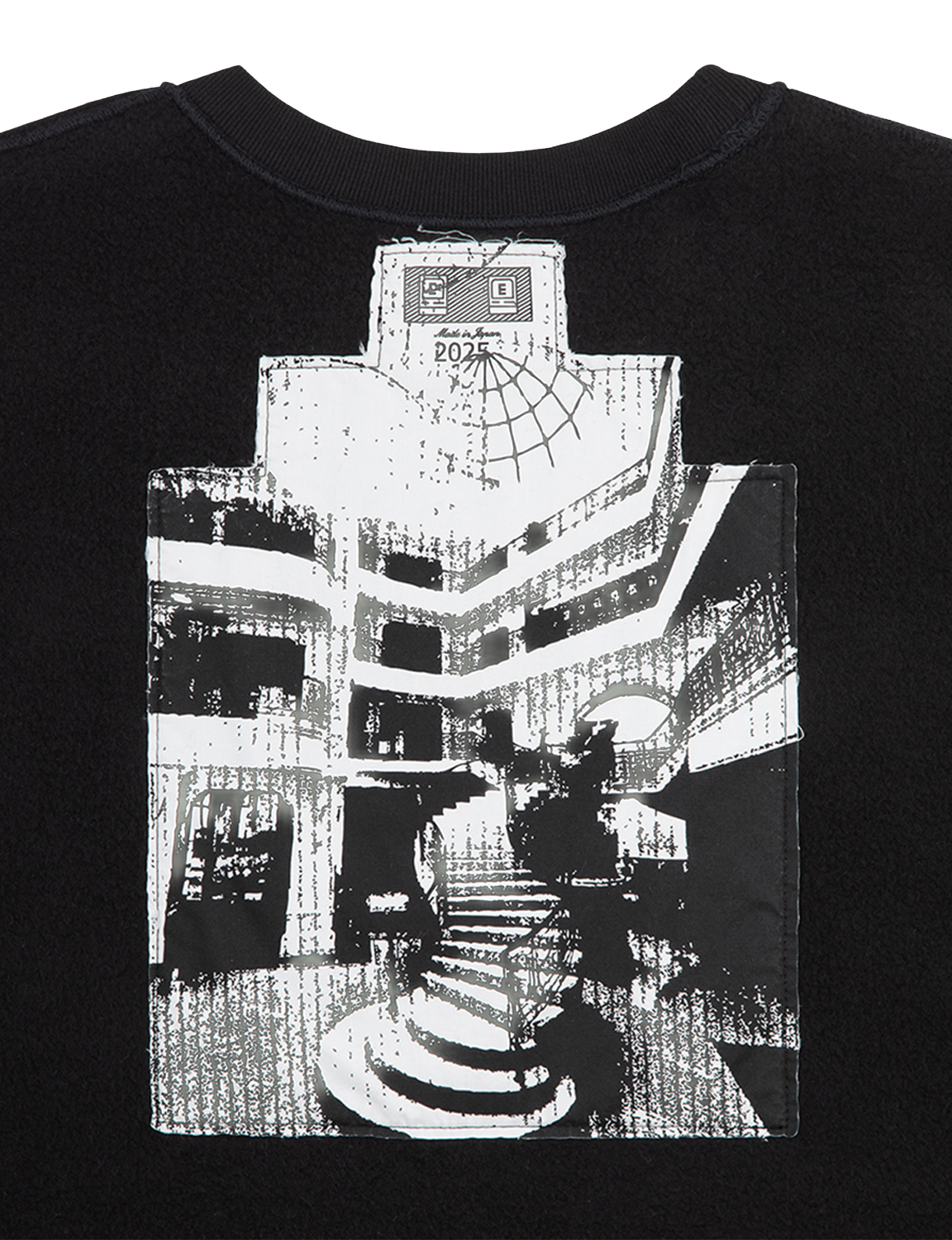 100%コットン。スウェット生地。プルオーバー。 クルーネック。セットインスリーブ。前身頃、後 身頃、袖にグラフィック。後ろ身頃裏に布パッ チ。左袖上部にシリコンパッチ。袖下、脇で生 地切り替え。ワイドシルエット。ウォッシュ加工。 日本製。